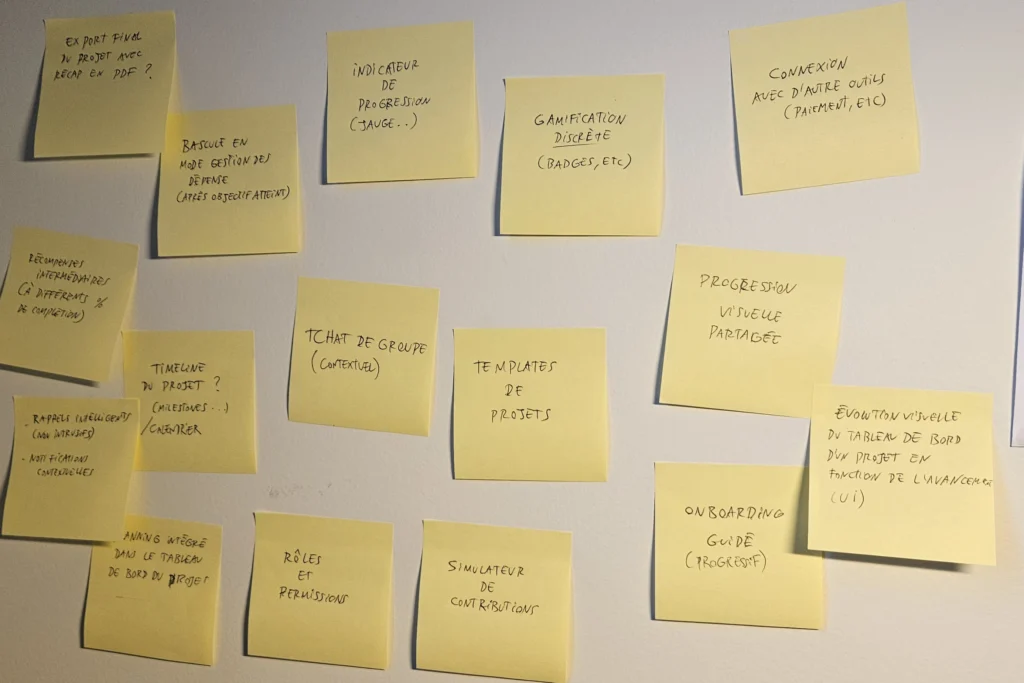 - Hésitations sur la localisation du tchat, et tableau de bord de projet trouvé un peu « confus », donc l’interface de cette page doit être revue, et la navigation par onglet abandonnée